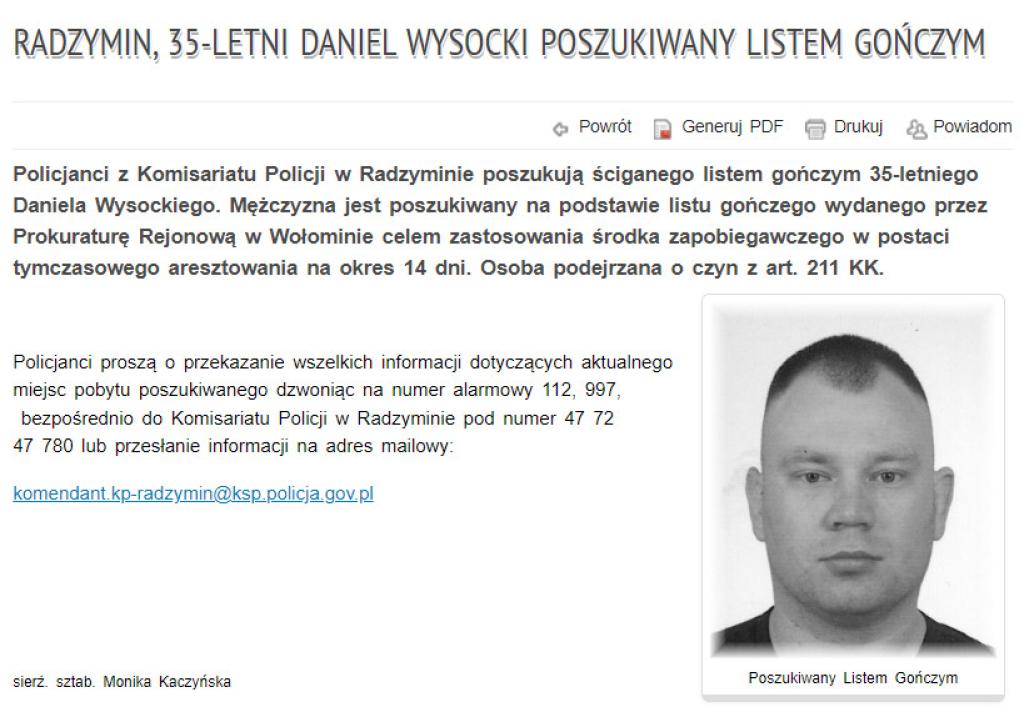 List gończy pojawił się na stronach policji w ubiegły piątek. Jest on dostępny pod linkiem: