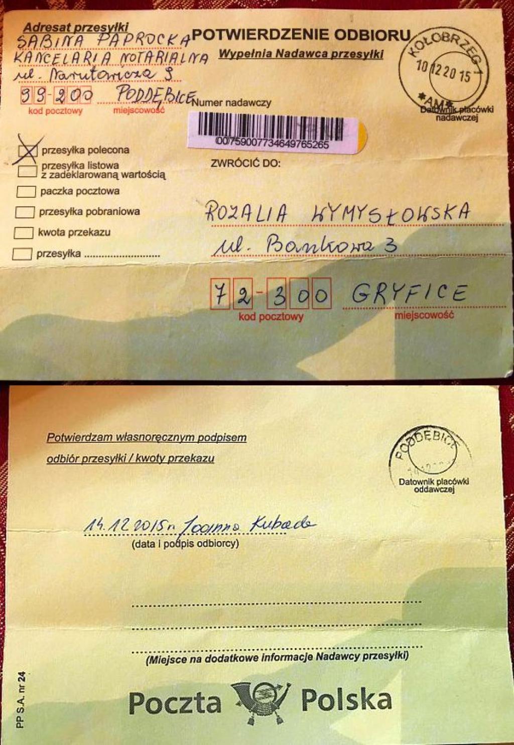 - Jako pełnomocnik mojej mamusi przesłałam listem poleconym do kancelarii notarialnej Sabiny Paprockiej za potwierdzeniem odbioru informację, że 28 grudnia 2015 roku chcę pojawić się razem z moją mamusią w jej kancelarii by cofnąć darowiznę w postaci posiadłości mojej mamy w Uniejowie na rzecz Dariusza Ruta z 2010 roku. Powodem była niewdzięczność, bo architekt zajął się swoimi biznesami a nawet nie pamiętał by zapewnić mojej mamusi podstawowe potrzeby bytowe - przekazuje Rozalia Wymysłowska.