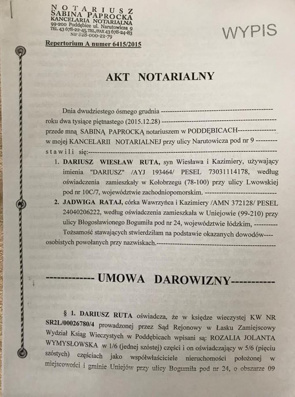 - Wtedy świadomie, razem z panią notariusz Sabiną Paprocką, wpędzili nas w spłatę tego długu. Moja mama Jadwiga zmarła nagle z tego całego stresu. A teraz ja zostałam z długiem, perspektywą wyrzucenia z domu i utratą całego dorobku życia naszej rodziny. Bo Dariusz Ruta doprowadził do sytuacji, że nasza atrakcyjna nieruchomość w pobliżu Term w Uniejowie w Województwie Łódzkim ma być sprzedana za ten dług! - płacze zrozpaczona Rozalia Wymysłowska.